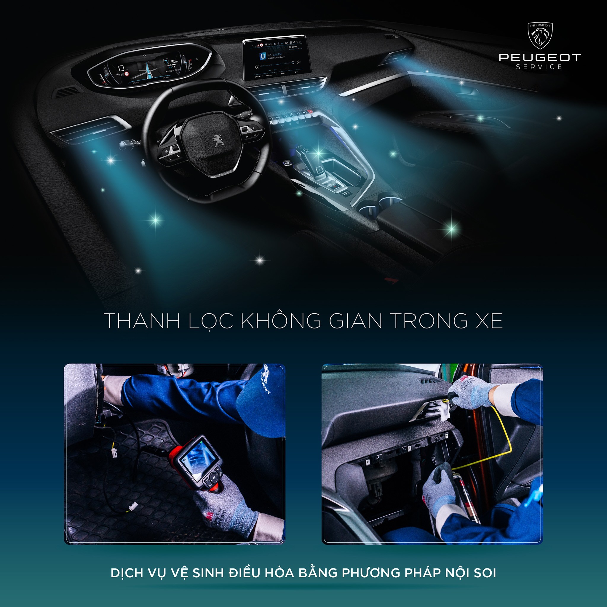 Để sẵn sàng khởi động cho ngày trở lại thêm tuyệt vời, hãy chăm sóc khoang nội thất ngay từ bây giờ bằng việc vệ sinh và thanh lọc không gian trong xe. Tại trung tâm dịch vụ Peugeot Phú Thọ, nhân viên kỹ thuật sử dụng công nghệ tiên tiến để làm sạch các hộc gió điều hòa, loại bỏ bụi bẩn, vi khuẩn, mùi hôi mà không cần phải tháo dỡ táp lô.